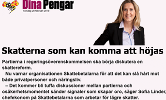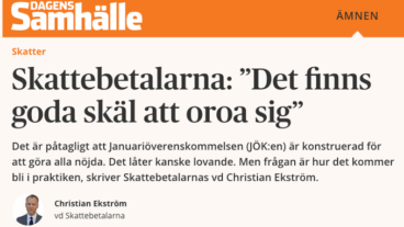 Skattebetalarna varnar för att Januariöverenskommelsen kan leda till höjda skatter som slår hårt mot både privatpersoner och näringsliv. – Det kommer bli tuffa diskussioner mellan…