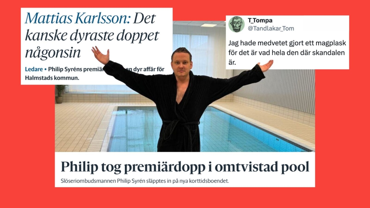 “Syftet med doppet var så klart att uppmärksamma det kommunala slöseri som den oanvända poolen är ett skrämmande exempel på”, skriver Mattias Karlsson på ledarsidan i samma tidning och konstaterar att ämnet, med rätta, engagerat:
