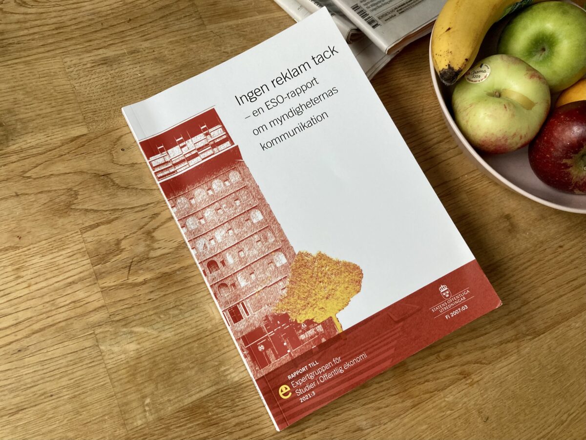 Att olika offentliga aktörer kommunicerar onödigt mycket är något som SlösO har lyft många gånger, men oftast i form av enskilda exempel. I en rapport av Expertgruppen för Studier i Offentlig ekonomi, ESO, ”Ingen reklam tack – en ESO-rapport om myndigheternas kommunikation” presenteras nu resultatet av en studie av de statliga myndigheternas kommunikation.